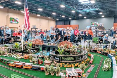 This National Traveling Train Show tours all across America and stops in Shakopee, Minnesota, at the Canterbury Downs facility every fall. Well attended with vendors and layouts. This particular photo highlights a wooden double helix built by MGRS member Jim Shaver of Mound, MN used in 2021. Show was held October 26 & 27, 2024 and planning on being at the 2025 event next fall.